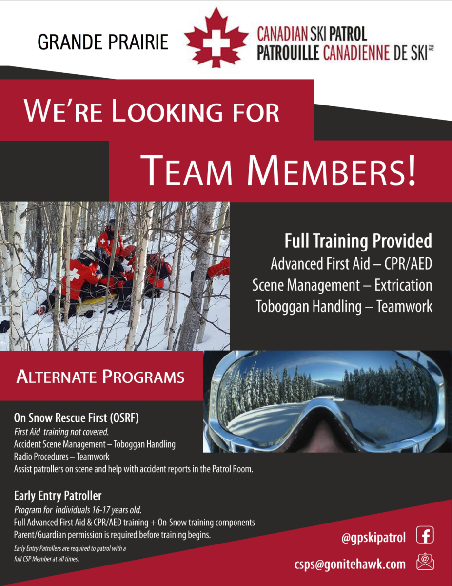 Nitehawk is proud to work with the Canadian Ski Patrol to keep our hill safe for our skiing & snowboarding guests.