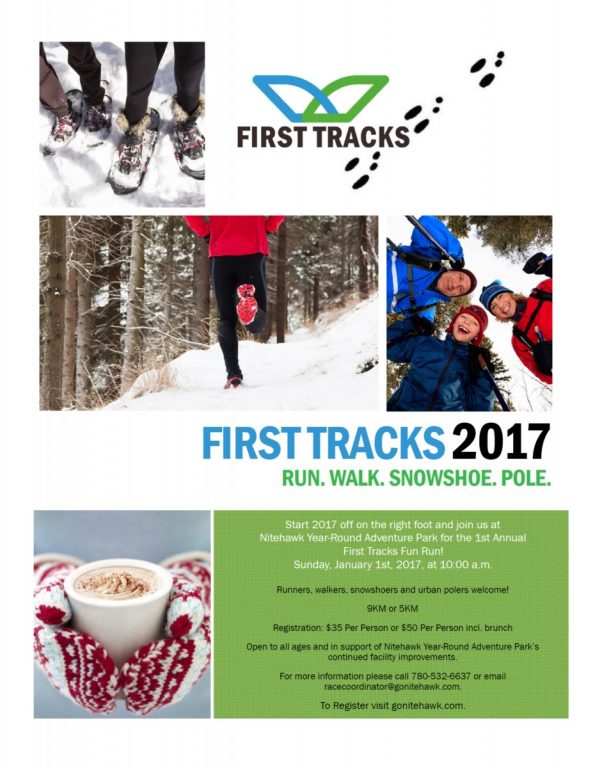 Start 2017 off on the right foot and join us at Nitehawk Year-Round Adventure Park for the 1st Annual “First Tracks” Fun Run on Sunday, January 1st, 2017, at 10:00 a.m.