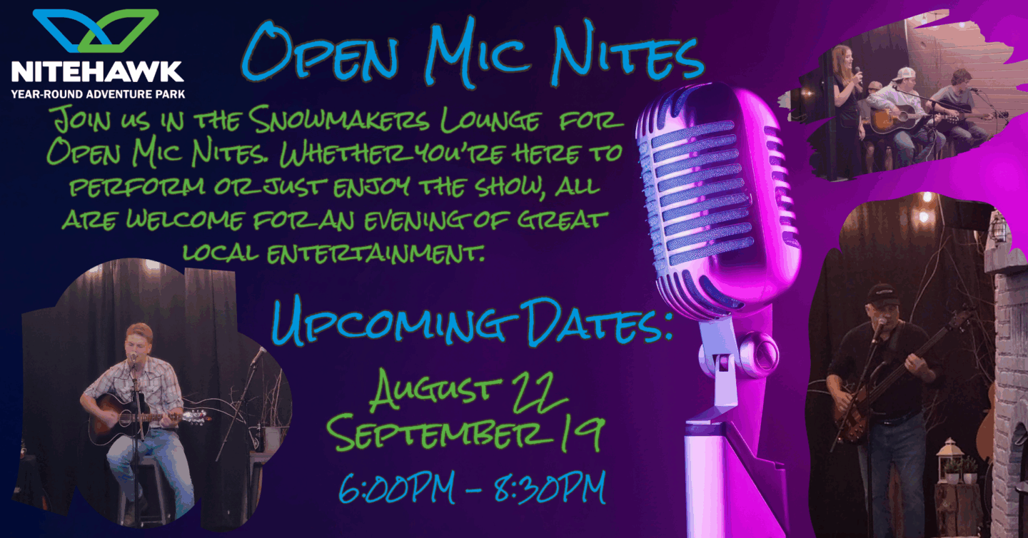 Join us in the Snowmakers Lounge for Open Mic Nites. Whether you’re here to perform or just enjoy the show, all are welcome for an evening of great local entertainment. Performers can register in advance at: https://old.gonitehawk.com/open-mic-night-sign-up/